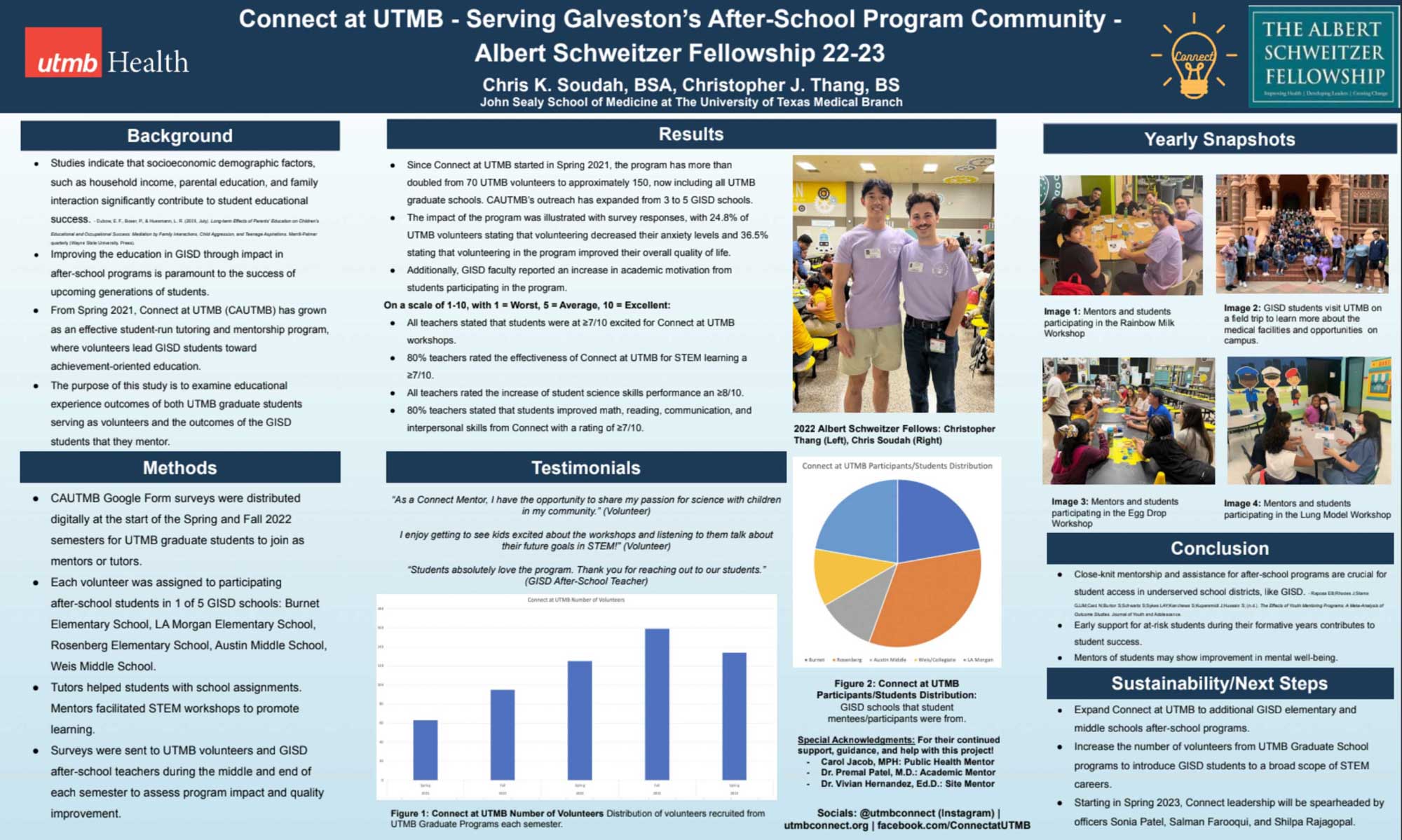 The Fellowship is proud of our long-standing relationship with UTHealth, our academic home. Being housed within the Department of Management, Policy & Community Health (MPACH) at the UTHealth School of Public Health allows us to align with the school’s mission and benefit from its state-wide reach. UTHealth anchors us in the Texas Medical Center, providing not only essential administrative resources – such as human resources and professional development for staff – but also thought partnership that strengthens our work. Our Fellows contribute by underscoring UTHealth’s commitment to improving community well-being.